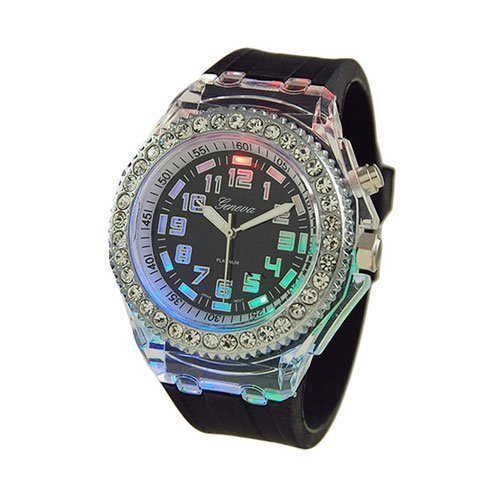 - Orange shingle style rubber strap with black ip fold over clasp with push button safety